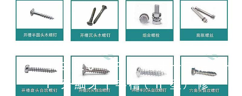 主要分類包括普通螺絲、機螺絲、自攻螺絲和膨脹螺絲三種。 有頭螺釘Cap screw 過去限于全牙的扣件。 六角頭螺釘Hex cap screw與大六角螺栓Hex bolt 顧名思義為頭部為六角型的外螺紋扣件,設計為使用扳手轉(zhuǎn)動。依照ASME B18.2.1標準,六 外扳擰:六角、六角法蘭面、六角凸緣、六角花形等;內(nèi)扳擰:一字槽、十字槽H型、十字槽Z型、十字槽F型、四方槽、復合槽、內(nèi)花鍵、內(nèi)六角花形、內(nèi)三角、內(nèi)六角、內(nèi)12角、離合器槽、六葉片型槽、高扭矩十字槽等。3、
