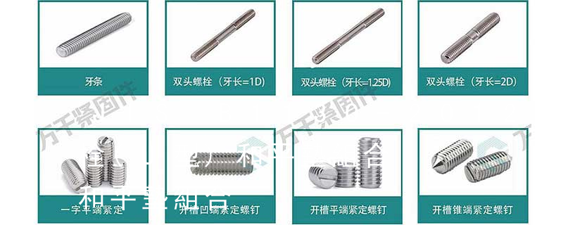 螺栓類:外六角螺栓、外六角法蘭面螺栓、內(nèi)六角圓柱頭螺栓、吊環(huán)螺栓、膨脹螺栓、沉頭內(nèi)六角螺栓、盤頭內(nèi)六角螺絲、馬車螺栓、雙頭螺栓、蝶型螺絲、活節(jié)螺栓、地腳螺 栓、U型螺栓、四角螺栓等 螺帽類:鉚螺母、吊環(huán)螺母、六