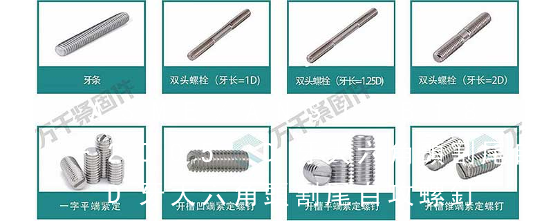 ANSI/ASME B1.7M-1984(R2001)版 螺紋的術(shù)語、定義和字母符號(hào) ASME B1.8-1988(R1994)版 矮牙愛克母螺紋 ASME B1.12-1987(R1998)版 5級(jí)過盈配合螺紋 ASME B1.13M-2005版 M形米制螺紋 ANSI/ASME B1.20.1-1983(R2001)版 通用 主要分類包括普通螺絲、機(jī)螺絲、自攻螺絲和膨脹螺絲三種。有頭螺釘Cap screw 過去限于全牙的扣件。六角頭螺釘Hex cap screw與大六角螺栓Hex bolt 顧名思義為頭部為六角型的外螺紋扣件,設(shè)計(jì)為使用扳手轉(zhuǎn)動(dòng)。依照ASME B18.2.