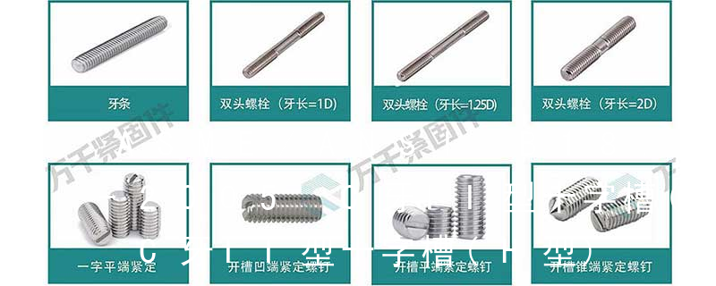 1)開槽普通螺釘多用于較小零件的連接。它有盤頭螺釘、圓柱頭螺釘、半沉頭螺釘和沉頭螺釘。盤頭螺釘和圓柱頭螺釘?shù)尼旑^強度較高,瑁在普通的部件連接上;半沉頭螺釘?shù)念^部呈弧形,安裝后它的頂端略外露,且美觀光滑,一般